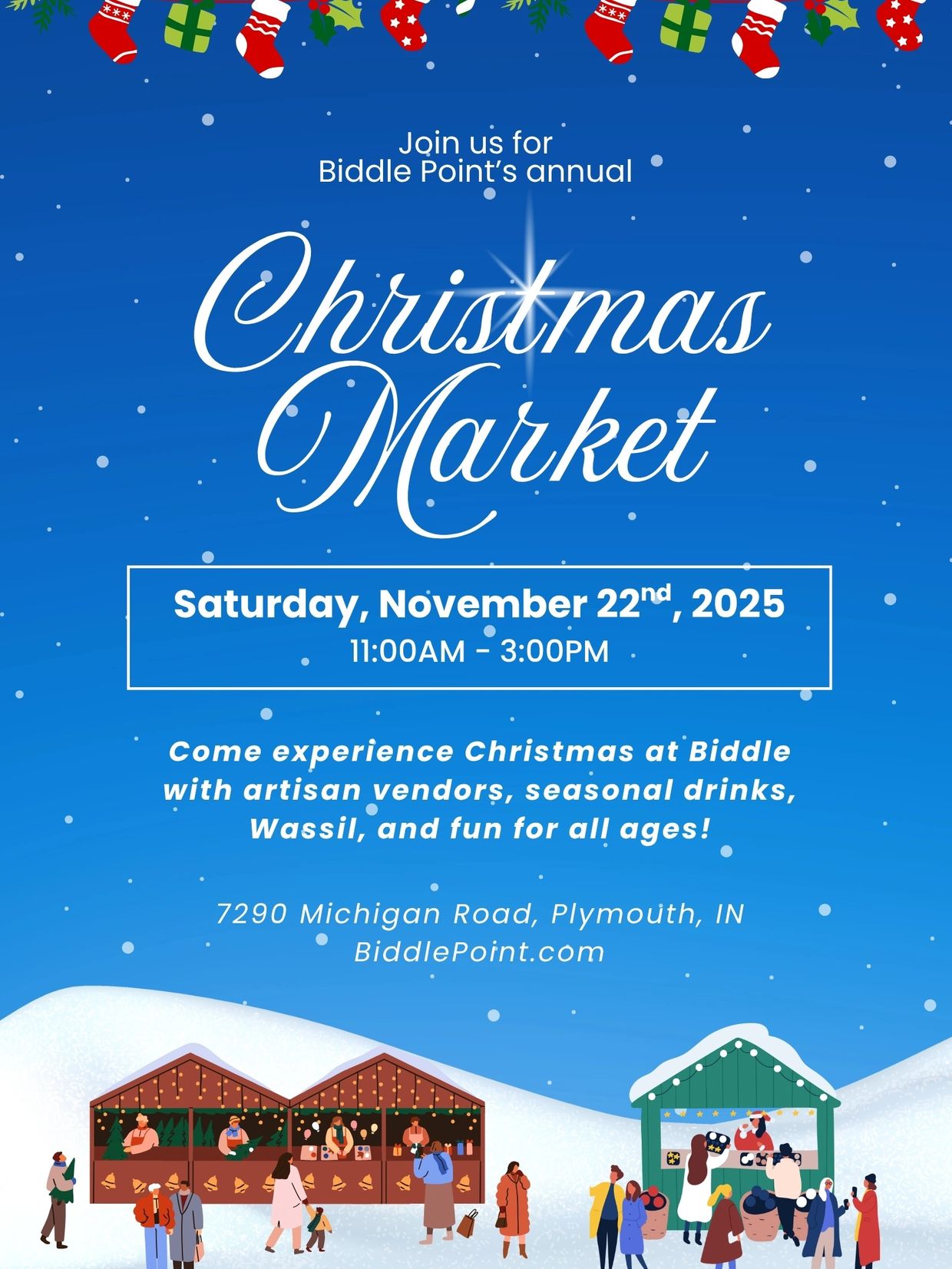 Come start your holiday season off at Biddle Point's second Indoor/ Outdoor Christmas market with food trucks, wassil, seasonal drinks, arti...